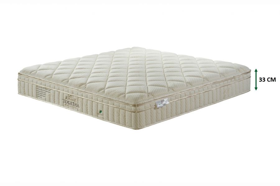 Togetha Luxury 100 — самая продаваемая флагманская модель Getha, изготовленная из слоев тщательно отобранного 100% натурального латекса, французской шерсти, органического хлопка, шёлка, оснащена антибактериальной защитой Nano Silver, а также защитой Anti-Static. Togetha Luxury 100 — идеальный матрас для тех, кто любит мягкое и пышное ощущение, похожее на сон на облаке. Конструкция верхней части матраса специально разработана для роскошного комфорта, уменьшения передачи движений партнера, для спокойного ночного отдыха.