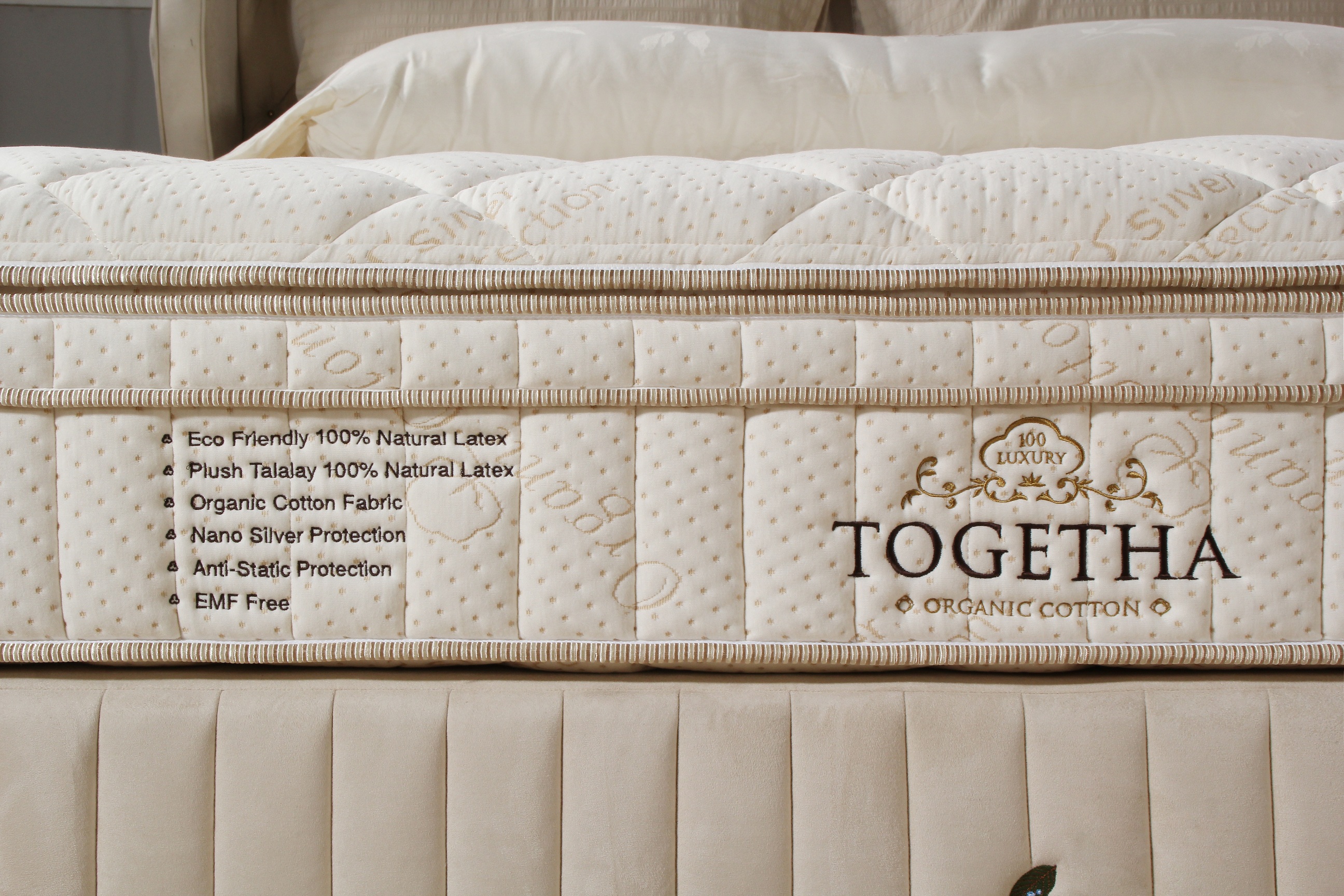 Togetha Luxury 100 — самая продаваемая флагманская модель Getha, изготовленная из слоев тщательно отобранного 100% натурального латекса, французской шерсти, органического хлопка, шёлка, оснащена антибактериальной защитой Nano Silver, а также защитой Anti-Static. Togetha Luxury 100 — идеальный матрас для тех, кто любит мягкое и пышное ощущение, похожее на сон на облаке. Конструкция верхней части матраса специально разработана для роскошного комфорта, уменьшения передачи движений партнера, для спокойного ночного отдыха.