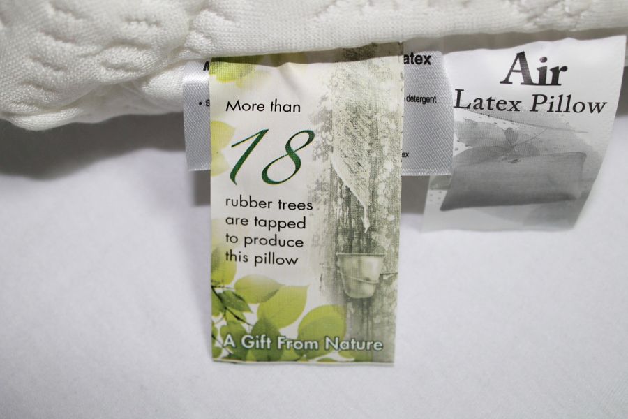 Подушка из 100% натурального латекса  (сок бразильской гевеи), собранного на плантациях в Малайзии. Подушка гиппоалергенна - не живут пылевые клещи и другие паразиты, экологична -  абсолютно натуральный состав наполнителя.Обладает антибактериальным эффектом, т.к. латекс - природный антисептик.