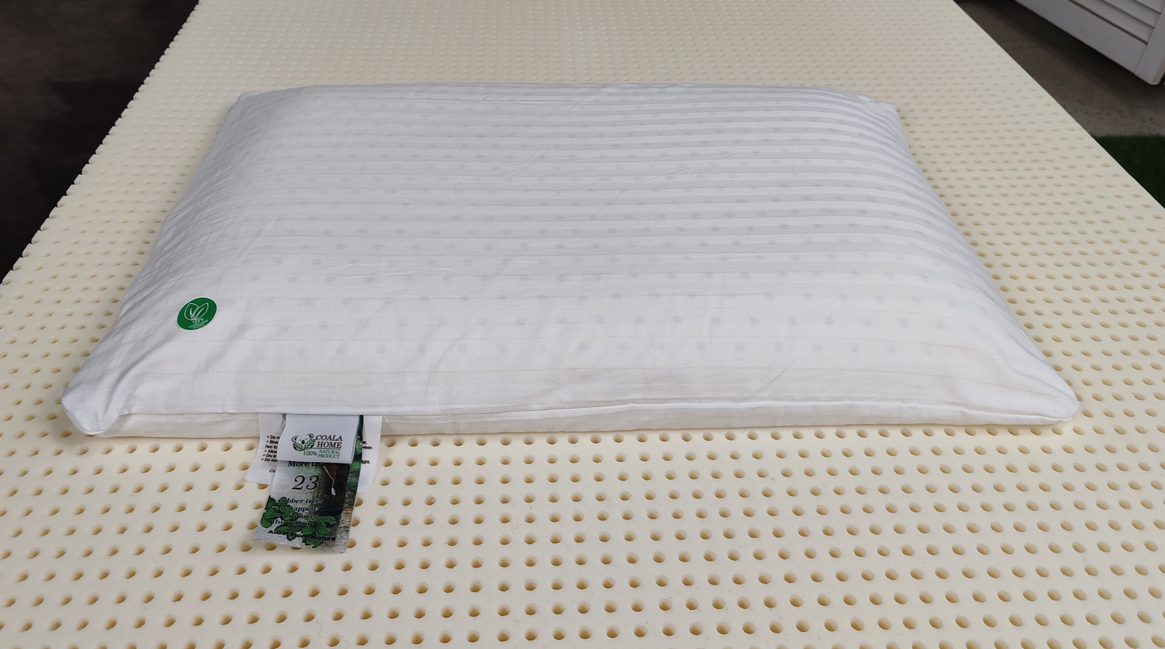 Подушка из 100% натурального латекса. Подушка гиппоалергенна - не живут пылевые клещи и другие паразиты, экологична - абсолютно натуральный состав. Обладает антибактериальным эффектом, т.к. латекс - природный антисептик.
